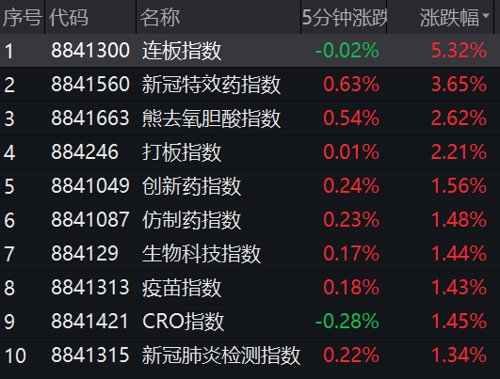 5月23日上午,医药生物板块在申万一级行业中冲在最前方。从细分领域来看,新冠特效药、熊去氧胆酸、创新药、CRO等概念涨幅明显。