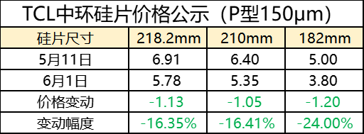 1、TCL中环硅片再降价!最大降幅24%