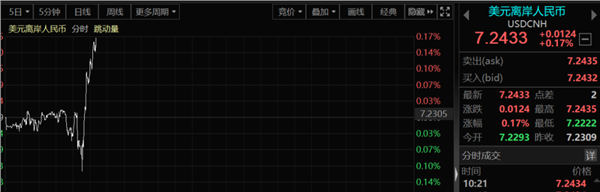 在昨天人民币大涨300点,股市反应集体向好的背景之下,今天早盘A50和人民币集体扑街。A50早盘直线跳水超1%,美元兑人民币又上破了7.24,早盘外资也是一通狂卖。