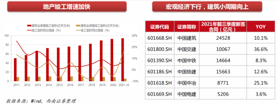从板块整体走势来看,建筑板块经过五年的下探,今年终于跑赢大盘,2021年初至11月底申万建筑装饰指数上涨7.0%,跑赢沪深300指数约13.9个百分点。