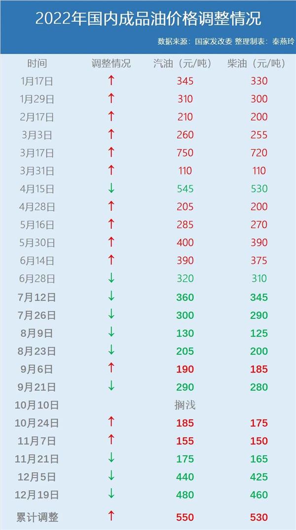 截至目前,今年国内油价已进行过23轮调整,总体呈现“13涨9降1搁浅”格局,此轮调整之后,今年国内油价调整将以“三连降”收尾,同时也基本跌去今年上半年的累计涨势,相较年初,国内汽、柴油价分别累计上涨550元和530元。