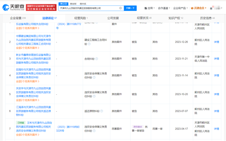 ´ËÍ⣬Òò¾°Çø°²È«´ø·çÏÕÒþ»¼¶ø±»ÆØ¹âµÄÌì½òÊоÅɽ¶¥×ÔÈ»·ç¾°Çø£¬ÌìÑ۲鷨ÂÉËßËÏÐÅÏ¢ÏÔʾ£¬2023ÄêÒÔÀ´£¬Ïà¹Ø¹«Ë¾¶à´ÎÒò“Î¥·´°²È«±£ÕÏÒåÎñÔðÈΔ³ÉΪ˾·¨°¸¼þ±»¸æ¡£