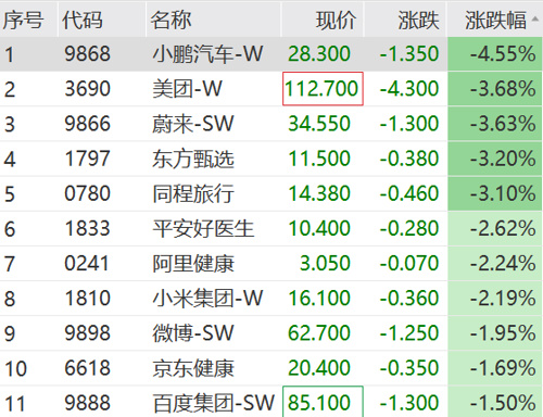 港股今日早间同样低开:恒生指数跌0.25%,恒生科技跌0.11%,恒生国企跌0.38%。上午港股震荡下行,截至发稿跌幅有所扩大;小鹏汽车领跌恒生科技。