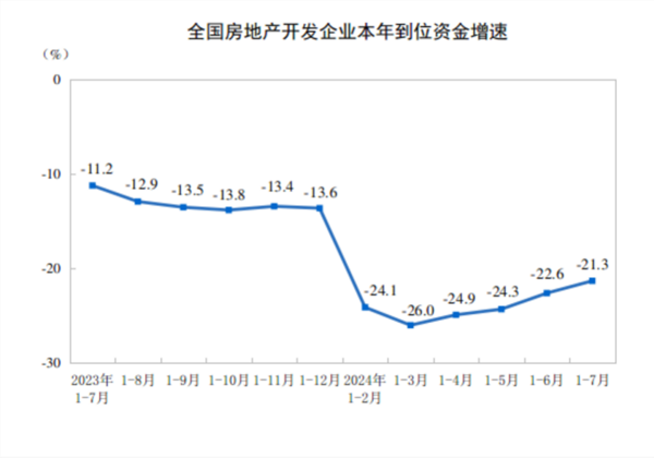 值得注意的是,房企到位资金累计同比降幅较1—6月收窄了1.3个百分点,已经连续4个月收窄。